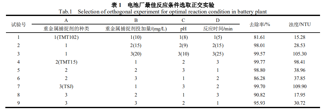 (1)由以上表1数据可得,某锂电池厂含Co废水三亿首页结果为重金属捕捉剂(铜试剂)、投加量 15 mg/L、pH=10、反应时间 25 min。