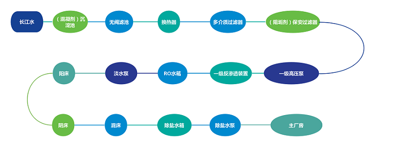 该厂采用反渗透技术作为预脱盐工艺,反渗透系统总出力为5×190m³/h,回收率为百分之80。