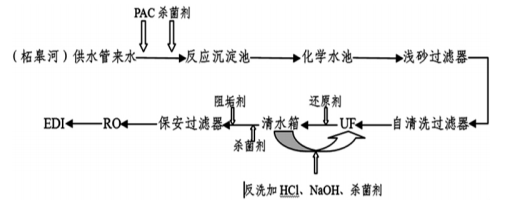 (6)容器管道清洗:每年对补给水系统各水池、水箱、管道进行清洗,除去系统中的微生物及金属腐蚀物。