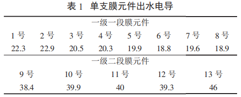(1)对RO 单支膜元件出水电导进行分析:从单支膜壳电导率可以可看出没有明显异常膜壳。说明膜元件未出现“O”形圈泄漏、望远镜现象、膜表面磨损、产水背压、泄漏等现象。
