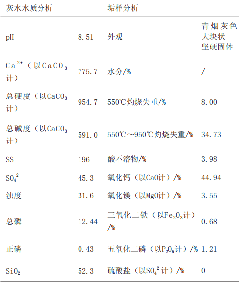 从灰水水质分析结果可以看出,所采灰水高硬、高碱、高pH值、高悬浮物,且由于投加了阻垢分散剂,总磷含量也较高。
