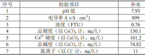 可以看出,补水的pH、电导率、浊度、硬度以及碱度结果都较高,易导致冷却水系统腐蚀积垢状况。