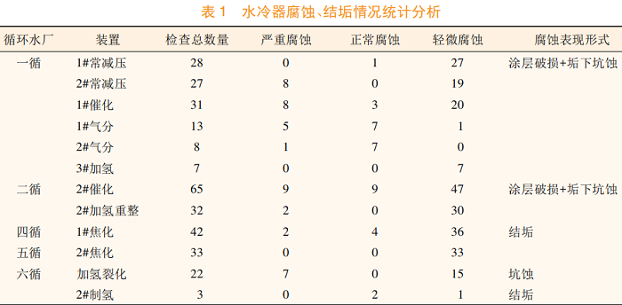 b) 建议严格按照炼油工艺防腐蚀操作细则的规定进行水质分析,增加pH值、浓缩倍数、碱度、硬度等分析项目。