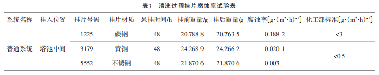 (2)挂片悬挂时间为25日10:00至27日10:00共48h。清洗过程挂片腐蚀率试验挂片外观,可以看出:因此从现场测试数据及挂片外观看,此次清洗成功的。