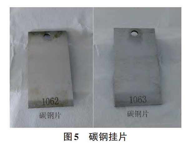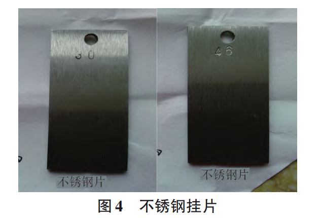 三亿首页后的挂片情况如图4和5所示。可以清楚地看到:不论是不锈钢挂片还是碳钢挂片,基本都是表面光洁、无明显腐蚀锈点。